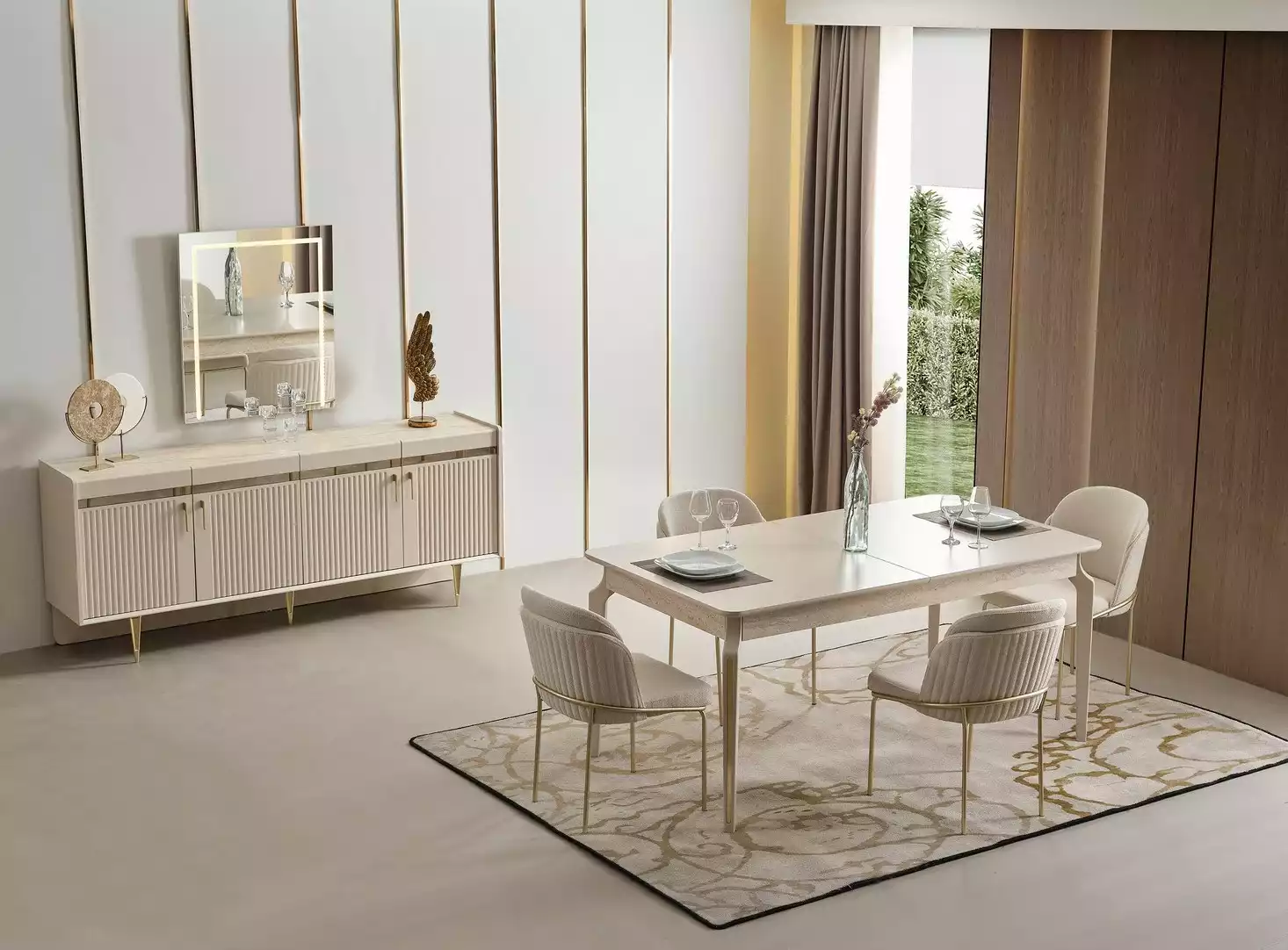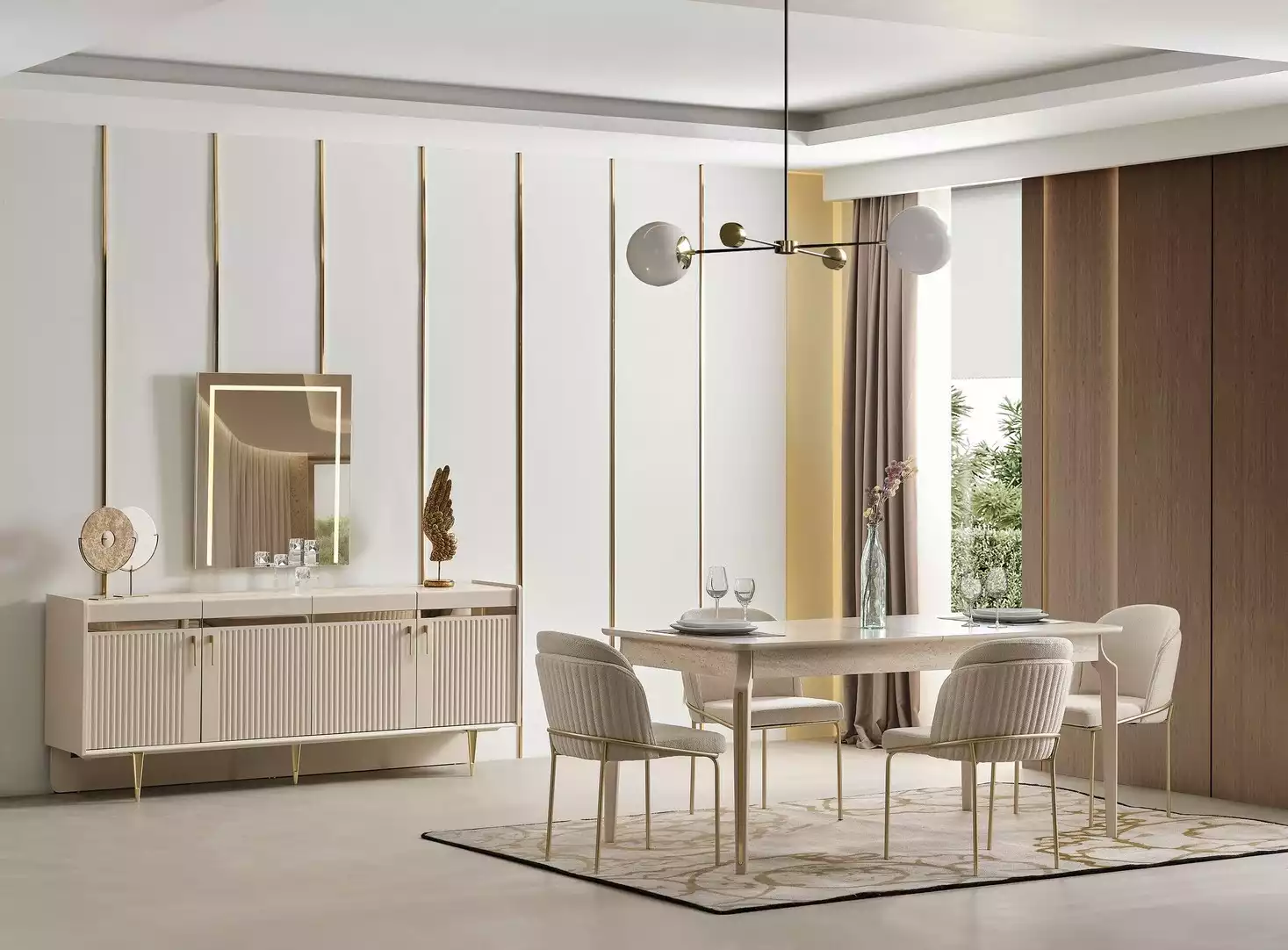 Tesla yemek odası takımı, modern şıklığı, fonksiyonelliği ve kalitesiyle evinizin vazgeçilmez bir parçası olacak. Uzun yıllar keyifle kullanabileceğiniz, unutulmaz anlar yaratacağınız bir yemek odası deneyimi için ideal bir seçimdir. Hayatınıza modern bir dokunuş katmak ve konforlu bir yaşam alanı yaratmak için hemen inceleyin!